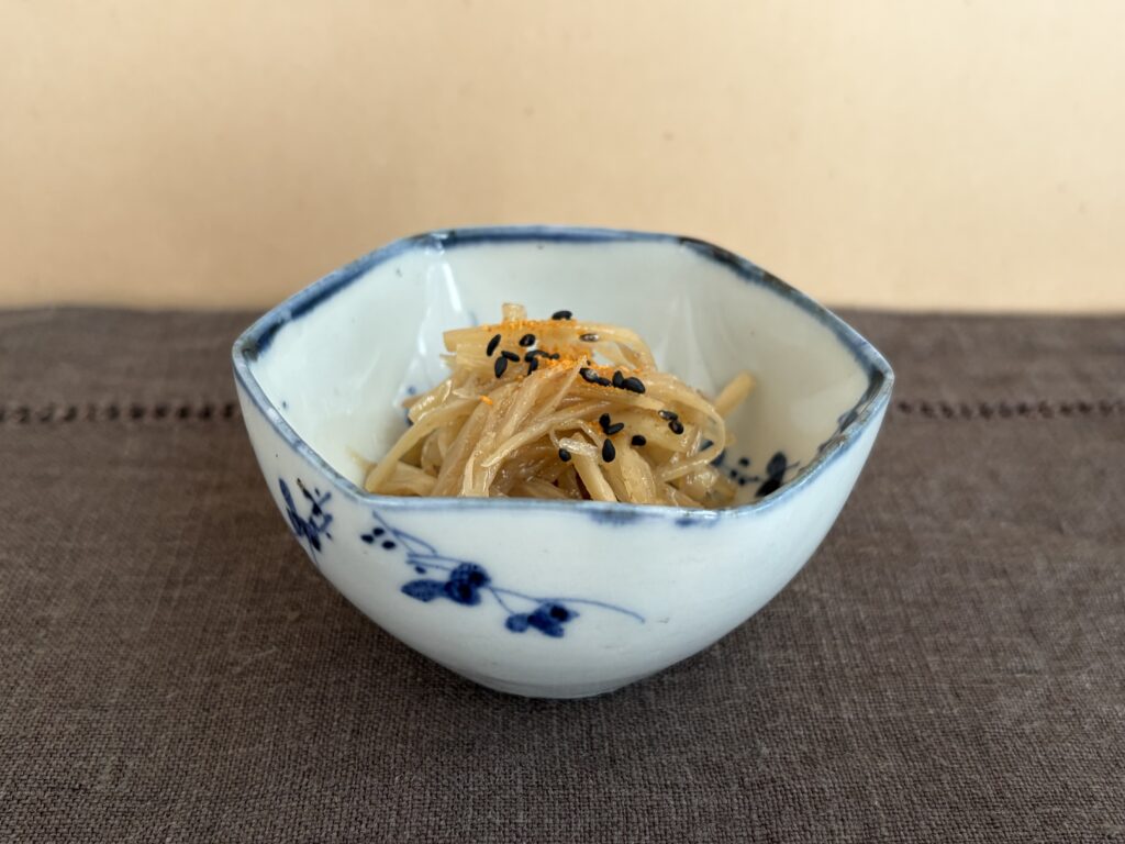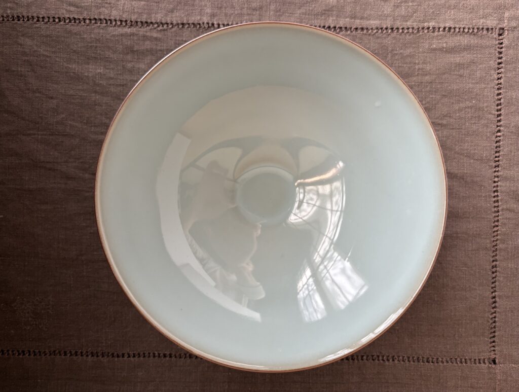 美しい青磁の鉢は、川瀬 忍(1950〜)のもの。何度も登場している、私が大好きな古余呂技窯、二代 川瀬 竹春 の長男で、18歳から祖父の初代 竹春、二代の父のもとで作陶を始めた。中国、宋の時代の青磁を研究し、祖父や父が得意とする古染め風の呉須や色絵ではなく、独自の青磁を確立した。