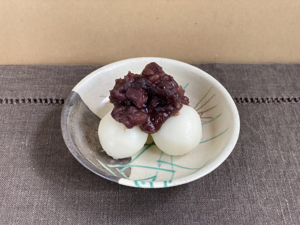 初めて作るお団子は、白玉の事を思い浮かべて丸く作るのは難しそう、と思ったけれど白玉粉と団子粉は原料が違っていて、扱いやすく形も作りやすい。出来立て、茹でたてのお団子はもちもちして、期待より美味しく出来た。粒あんを載せてお月見気分を味わった。