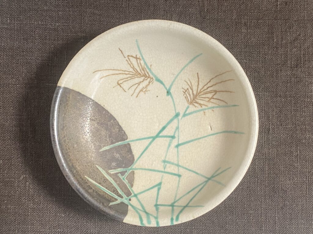 器 永楽窯 月とすすき小皿  径10,5cm 高3cm