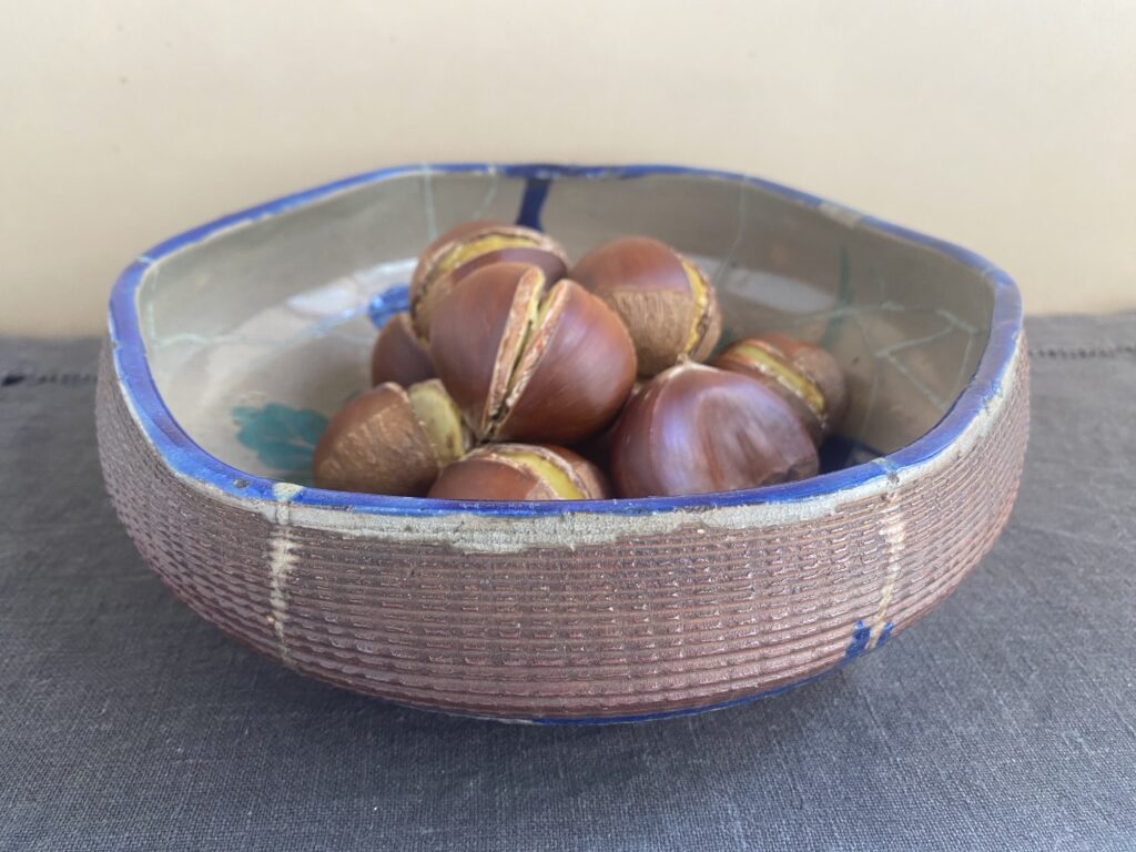 立派な栗を見つけて、焼き栗を作った。季節になって木の実、山の幸と向き合ってみると、食料を求めて人里に出没する野生の熊を思ってしまう。気候のせいで熊が食料とする木の実が不作とも言われるが、人が栽培している作物や、人の食の廃棄物なら楽に満腹になる、と熊が学んで来たのも事実だろう。人が廃棄物を狙われないように工夫すれば、熊も一歩踏み込んで貯蔵庫などを荒らしたりする。生きるために楽な方法を学んで行くのは致し方ないのかも知れない。熊や猪、野生の動物達が人間は暮らすための労働が楽になっているのだから自分達も、とまでは考えないにしても時代と共に人間社会との関わり方が変わって来ているのだなあ。などと栗を剥いて食べながら考える。